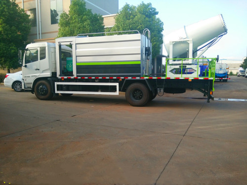 50米多功能抑塵車罐體配置:灑水罐罐體為橢圓形或方圓,材質(zhì)為武鋼產(chǎn)4mm厚熱板,罐體容積為10-15立方米(可根據(jù)用戶要求制作),可載水10-12噸,上戶噸位為6.3噸。罐體采用對接焊工藝制造,進(jìn)行氣壓檢漏試驗(yàn),配備取力器、灑水泵及綠化炮等裝置,帶消防接口,可通過消防栓進(jìn)水,并帶有工作平臺(tái),具備有前沖、后灑、側(cè)噴等灑水功能,同時(shí)綠化炮的出水形態(tài)可根據(jù)需要調(diào)節(jié)成柱狀、大雨、小雨及霧狀等,可全方位旋轉(zhuǎn),其射程可達(dá)28米以上。