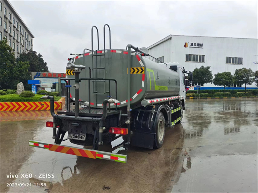 東風(fēng)12噸灑水車產(chǎn)品標(biāo)配前噴(鴨嘴)、后沖、后灑、側(cè)噴、后置式工作平臺,平臺上配置綠化水炮(可 360°旋轉(zhuǎn),既可以調(diào)成柱狀,也可以調(diào)成霧狀,更可以調(diào)成直沖狀、大雨、中雨、小雨、毛毛雨),配備優(yōu)質(zhì)大功率專用灑水泵(可自吸自排,可從河里或池塘抽水到罐體),取力器,雜物過濾網(wǎng),消防接口,自流球閥系統(tǒng)、取力器、球閥、濾網(wǎng)均為國家標(biāo)準(zhǔn)產(chǎn)品,