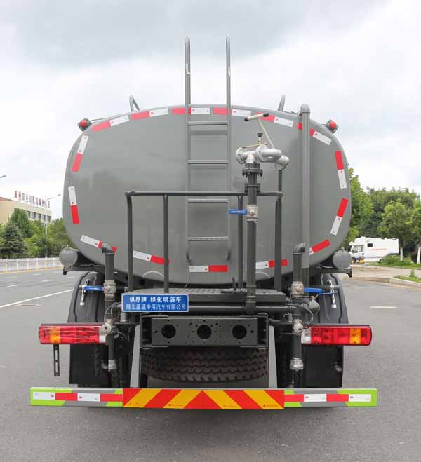 福田ES7灑水車標配前噴(鴨嘴)、后沖、后灑、側噴、后置式工作 平臺,平臺上配置綠化水炮(可 360°旋轉,既可以調成柱狀,也可 以調成霧狀,更可以調成直沖狀、大雨、中雨、小雨、毛毛雨),配 備優質大功率專用灑水泵(可自吸自排,可從河里或池塘抽水到罐體), 取力器,雜物過濾網,消防接口,自流球閥系統、取力器、球閥、濾網 均為國家標準產品,主管道加粗,法蘭墊、法蘭盤加厚,大通徑球閥。 整體具備性能優良安全可靠、效率高、流量大、維修方便等特點。
