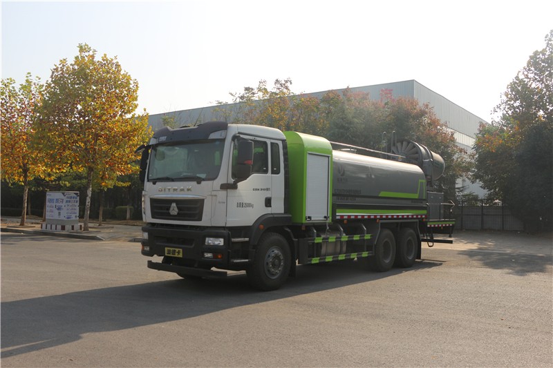重汽大型霧炮灑水車產品簡述 抑塵車又稱為綠化噴灑車、多功能灑水車、園林綠化灑水車。抑塵灑水車適合于各種路面沖洗,樹木、綠化帶、草坪綠化,道路、廠礦企業 施工建設,高空建筑沖洗。抑塵也可以作為運水車使用,最常見的車 型有綠化噴灑車、多功能灑水車、綠化灑水車幾大類。