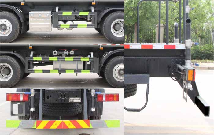該車主要用于城鄉園林綠化噴灑作業.主要裝置為罐體及噴灑裝置;罐體總容量:19.67立方米;罐體有效容積:18.74立方米;罐體外形尺寸(長×長軸×短軸)(mm):7300×2450×1650.僅采用軸距(mm):1800+3800+1350改裝.側、后防護材料均為:Q235碳鋼,連接方式均為:螺栓連接,后部防護截面尺寸(mm):120×50,后部防護離地高度(mm):490.ABS系統控制器生產企業/型號為采埃孚商用車系統(青島)有限公司/4460046300;隨底盤選裝駕駛室,選裝噴霧裝置樣式,選裝自動球閥安裝位置,選裝弧形噴灑裝置,選裝箭頭燈裝置,選裝大工作平臺,選裝前部不帶電子霧炮.選裝電子炮裝置樣式.當前部選裝電子炮裝置時,前伸為500mm,整車長度為11560mm,11750mm.隨底盤選裝限速裝置,限速89km/h.