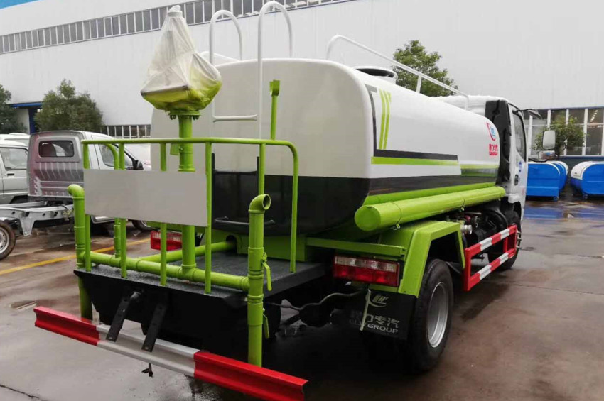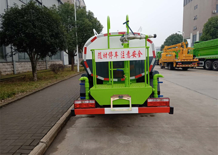 東風藍牌3噸灑水車上裝配置:罐體采用4mm厚武鋼集團供應的罐車專用板材制作,實際容積2立方,罐內防浪隔板具有防波作用,減低罐內液體的沖擊。配備65QZ-40/45型大功率灑水車專用水泵,可自吸自排,引水時間<8min,流量40m3/h,揚程45米。其它專用部分標配為:前沖、后灑、側噴、后工作平臺帶360度可調節綠化水炮,垂直吸程≧7米,灑水寬度≧14-16米,綠化水炮射程≧20-25米,自流閥、濾網、消防接口(可連接消防栓取水,可作應急消防用)。罐前量管(觀察罐內水位)、罐后爬梯、罐上罐口帶簡易護欄、罐側雙炮筒,罐體表面雙層油漆工藝,防銹、耐腐蝕,其余有廠家標配。可選擇加裝加裝藥盤、氣動控制閥、噴藥設備、罐內防腐等。