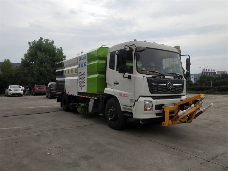 洗掃車(chē)采用中置兩刷盤(pán),中置寬吸盤(pán),配上具有防撞避障功能的V型高壓沖水架,組成一條大于3.5米的沖洗清掃帶。采用康明斯EQ6BT5.9-118型副發(fā)動(dòng)機(jī)現(xiàn)階段亦有采用電動(dòng)作為動(dòng)力的驅(qū)動(dòng)裝置橫置在車(chē)架中部,具有氣動(dòng)離合裝置控制的抽吸風(fēng)機(jī)布置在動(dòng)力倉(cāng)的左側(cè)。采用不銹鋼材料加工而成的水箱與垃圾箱均為采用方形瓦棱結(jié)構(gòu)。水箱分為兩部位,一部分為前置獨(dú)立水箱,裝配在動(dòng)力倉(cāng)的前部;另一部分為設(shè)置在垃圾箱前部的水箱,可隨垃圾箱與動(dòng)力倉(cāng)罩同時(shí)升降。具有舉升功能的垃圾箱內(nèi)裝配有高壓沖洗噴頭,使得卸料更為輕松、干凈徹底。能夠隨垃圾箱體舉升的動(dòng)力倉(cāng)罩可使動(dòng)力系統(tǒng)的維修保養(yǎng)極為便利。采用歐美地區(qū)的名優(yōu)配套部件,使得整車(chē)性能更為優(yōu)良,工作更為可靠。