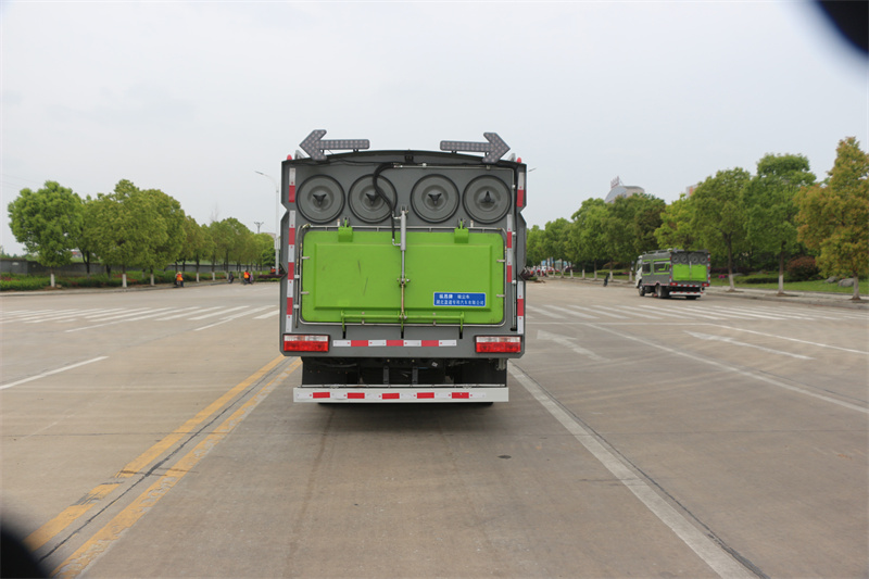 上裝配置:2立方水箱、6立方不銹鋼垃圾箱,中置吸盤、江鈴五十鈴副發動機、施耐德控制開關、海普瑞思電磁閥組、無極變速自動離合器、免維護離心式風機、不銹鋼垃圾箱、高精度垃圾箱過濾系統(最高可達0.5微米)、進口脈沖閥、PLC一鍵智能控制系統、尾部LED箭頭燈、手動泵應急系統、車尾霧狀噴水潤濕功能。本車輛可加裝雪鏟,掃刷,前沖后灑,實現車輛的一車多用。