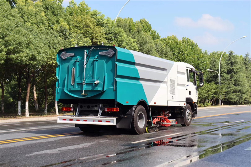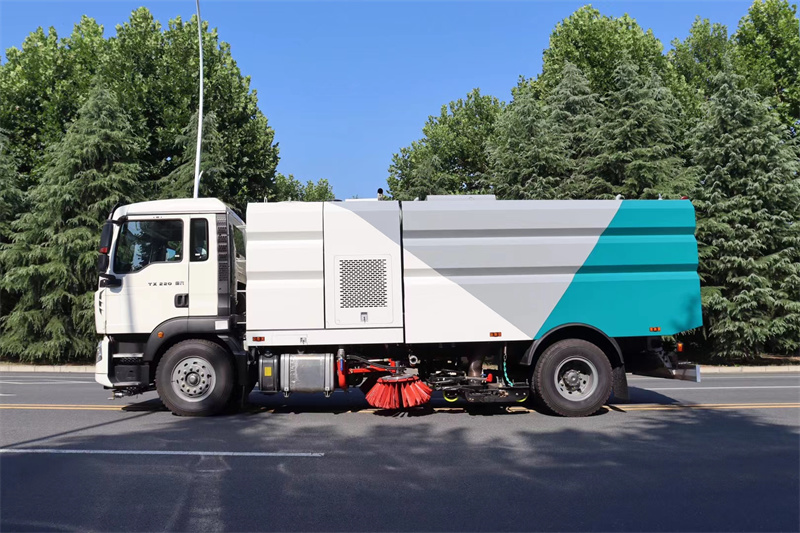 9、掃路車,清掃車,洗掃車,除塵過(guò)濾系統(tǒng)設(shè)置三級(jí)氣力輸送除塵裝置。濾筒式過(guò)濾系統(tǒng)采用脈沖式除塵。除塵系統(tǒng)中設(shè)有氣壓開(kāi)關(guān)進(jìn)行壓差控制實(shí)現(xiàn)脈沖自動(dòng)除塵;