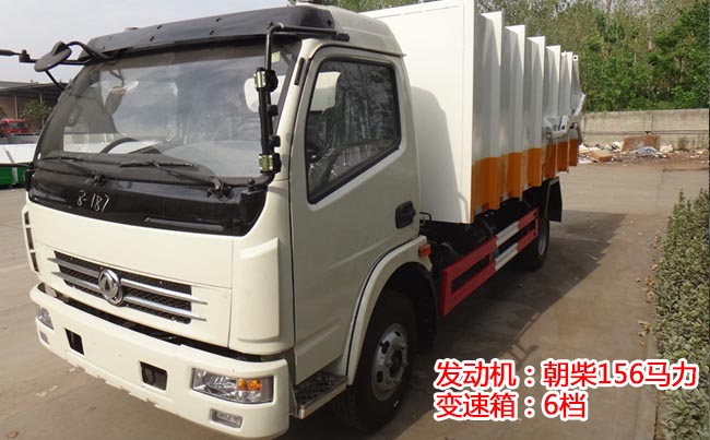 東風(fēng)多利卡D7對接式垃圾車,D7單排駕駛室,朝柴156馬力發(fā)動機(jī),6檔變速箱,.2噸后橋,7.50R16鋼絲胎,氣剎,帶ABS,方向助力。
