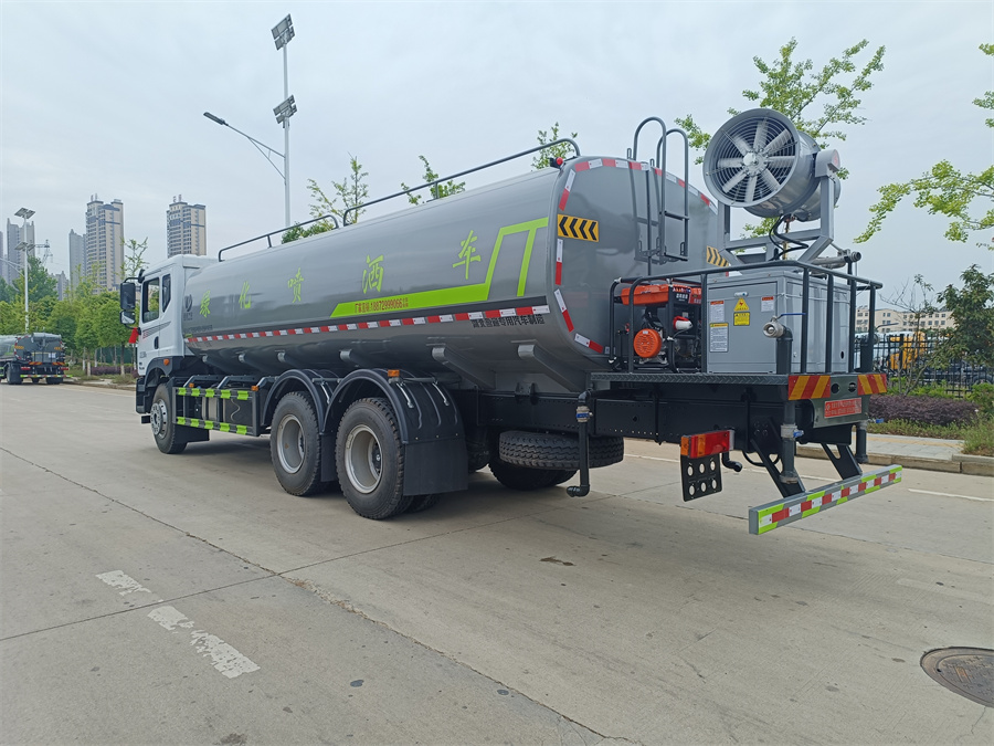 東風(fēng)新款22噸霧炮灑水車產(chǎn)品標(biāo)配前噴(鴨嘴)、后沖、后灑、側(cè)噴、后置式工作 平臺,平臺上配置綠化水炮(可 360 °旋轉(zhuǎn),既可以調(diào)成柱狀,也可 以調(diào)成霧狀,更可以調(diào)成直沖狀、大雨、中雨、小雨、毛毛雨),配 備優(yōu)質(zhì)大功率專用灑水泵(可自吸自排,可從河里或池塘抽水到罐體), 取力器,雜物過濾網(wǎng),消防接口, 自流球閥系統(tǒng)、取力器、球閥、濾網(wǎng) 均為國家標(biāo)準(zhǔn)產(chǎn)品,主管道加粗,法蘭墊、法蘭盤加厚,大通徑球閥。 整體具備性能優(yōu)良安全可靠、效率高、流量大、維修方便等特點(diǎn)。