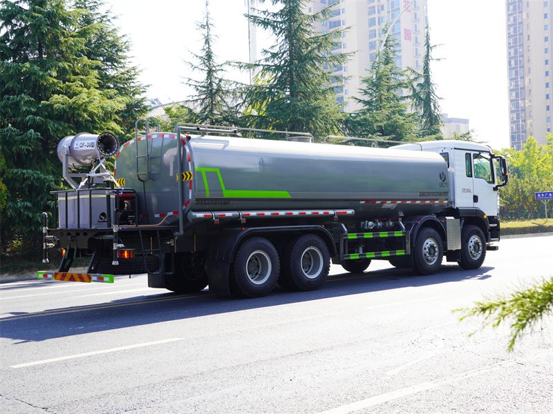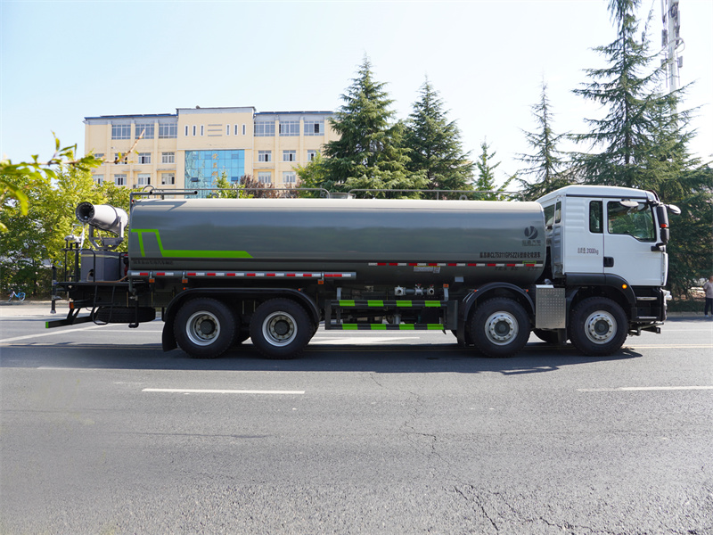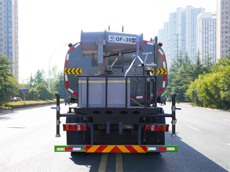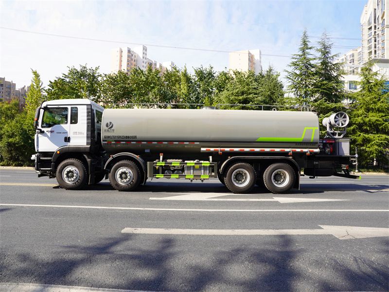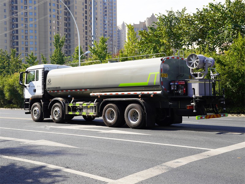 重汽25噸霧炮灑水車該車主要用于城鄉園林綠化噴灑作業.主要裝置為罐體及噴灑裝置;罐體總容量:19.67立方米;罐體有效容積:18.74立方米;罐體外形尺寸(長×長軸×短軸)(mm):7300×2450×1650.僅采用軸距(mm):1800+3800+1350改裝.側、后防護材料均為:Q235碳鋼,連接方式均為:螺栓連接,后部防護截面尺寸(mm):120×50,后部防護離地高度(mm):490.ABS系統控制器生產企業/型號為采埃孚商用車系統(青島)有限公司/4460046300;隨底盤選裝駕駛室,選裝噴霧裝置樣式,選裝自動球閥安裝位置,選裝弧形噴灑裝置,選裝箭頭燈裝置,選裝大工作平臺,選裝前部不帶電子霧炮.選裝電子炮裝置樣式.當前部選裝電子炮裝置時,前伸為500mm,整車長度為11560mm,11750mm.隨底盤選裝限速裝置,限速89km/h.,選裝油箱電瓶位置,選裝車輛后部高位花灑裝置,選裝方形罐口及罐口位置,選裝尾部自流口裝置.