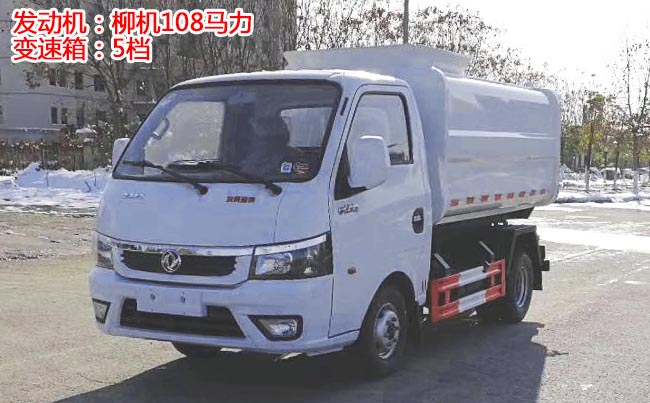 箱體容積3~4立方米,箱體材料為碳鋼,邊三底四,國(guó)產(chǎn)液壓系統(tǒng)、多路閥,側(cè)面掛桶提升機(jī)構(gòu),箱體雙杠液壓舉升卸料,駕駛室外部操作,后門手動(dòng)開啟。