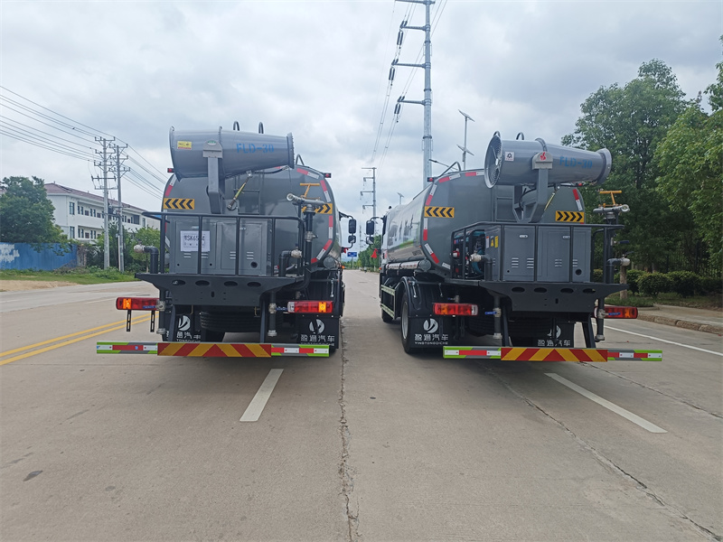 1.產品簡述:縱昂牌 CLT5188GPSEQ6A 型綠化噴灑車標配前噴(鴨嘴)、后對沖、 后灑、側噴、后置式工作平臺,平臺上配置綠化水炮(可 360°旋轉,既可以調 成柱狀,也可以調成霧狀),配備優質大功率專用灑水泵(可自吸自排,可從河 里或池塘抽水到罐體),取力器,雜物過濾網,消防接口,自流球閥系統、取力 器、球閥、濾網均為國家標準產品,主管道加粗,法蘭墊、法蘭盤加厚,大通徑 球閥。整體具備性能優良安全可靠、效率高、流量大、維修方便等特點。