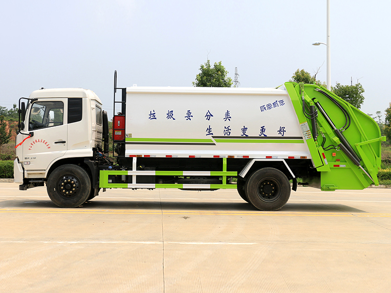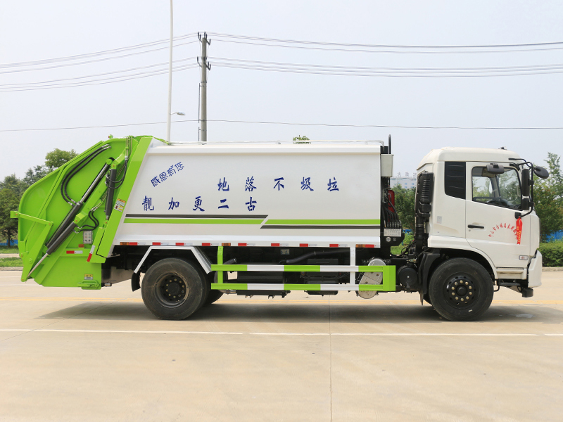 新款平面弧形廂體,廂體材料為武鋼優質碳鋼,外箱尺寸:8890×2500×3300mm,有效壓縮容積12-14立方,PLC一鍵操作控制,手電一體操作模式,兩側雙電控,帶駕駛室內操作,底板支撐加強,雙向壓縮,開放式易清潔污水箱。壓縮式垃圾車采用機電液一體化技術,借助機、電、液聯合自動控制系統、電腦控制、手動操作系統,通過填裝器和推鏟等專用裝置,實現垃圾倒入、壓碎或壓扁、強力裝填,把垃圾擠入車廂并壓實和推卸,污水全部進入污水收集箱,解決了垃圾運輸過程中的二次污染的問題。壓縮式垃圾車具有自動反復壓縮以及蠕動壓縮功能,壓縮比高、密封性好、裝載量大﹑操作方便、環保性好﹑整車利用功率高等優點。
