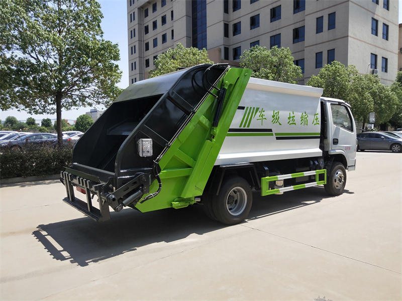 垃圾車新款平面弧形廂體,廂體材料為武鋼優質碳鋼,外箱尺寸:6970×2080×2570mm,有效壓縮容積6立方,采用邊四底四優質鋼板制作,國內知名品牌博利液壓油缸,杰特油管,揚州中梅多路閥,皖液齒輪油泵,西門子PLC電控開關。壓縮式垃圾車采用機電液一體化技術,借助機、電、液聯合自動控制系統、電腦控制、手動操作系統,通過填裝器和推鏟等專用裝置,實現垃圾倒入、壓碎或壓扁、強力裝填,把垃圾擠入車廂并壓實和推卸,污水全部進入污水收集箱,解決了垃圾運輸過程中的二次污染的問題。壓縮式垃圾車具有自動反復壓縮以及蠕動壓縮功能,壓縮比高、密封性好、裝載量大﹑操作方便、環保性好﹑整車利用功率高等優點。