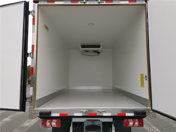 江淮帥鈴E 4米2冷藏車廂體配置為:采用斷橋隔熱工藝,整體框架結(jié)構(gòu)制作,廂體內(nèi)、外壁材料為玻璃鋼板,采用高密度保溫層,廂板內(nèi)帶有骨架,廂體厚度80mm,門框,門飾件、包角全部使用不銹鋼材質(zhì)。最新款鋁合金包邊型材,廂體內(nèi)采用LED照明燈及廂體示寬燈;門框密封條為橡膠材質(zhì),后門梁帶加厚防撞塊,加厚型不銹鋼鉸鏈及鎖件。車體副梁采用510L高強(qiáng)度鋼制作,底板為鋁花紋板,車廂后門帶一個上車扶手,其余標(biāo)配;