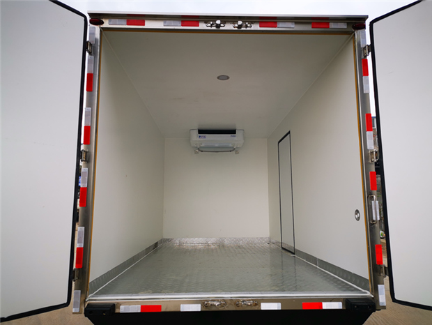 福田歐馬可4米2冷藏車廂體配置為:采用斷橋隔熱工藝,整體框架結(jié)構(gòu)制作,廂體內(nèi)、外壁材料為玻璃鋼板,采用高密度保溫層,廂板內(nèi)帶有骨架,廂體厚度80mm,門框,門飾件、包角全部使用不銹鋼材質(zhì)。最新款鋁合金包邊型材,廂體內(nèi)采用LED照明燈及廂體示寬燈;門框密封條為橡膠材質(zhì),后門梁帶加厚防撞塊,加厚型不銹鋼鉸鏈及鎖件。車體副梁采用510L高強(qiáng)度鋼制作,底板為鋁花紋板,車廂后門帶一個(gè)上車扶手,其余標(biāo)配;
