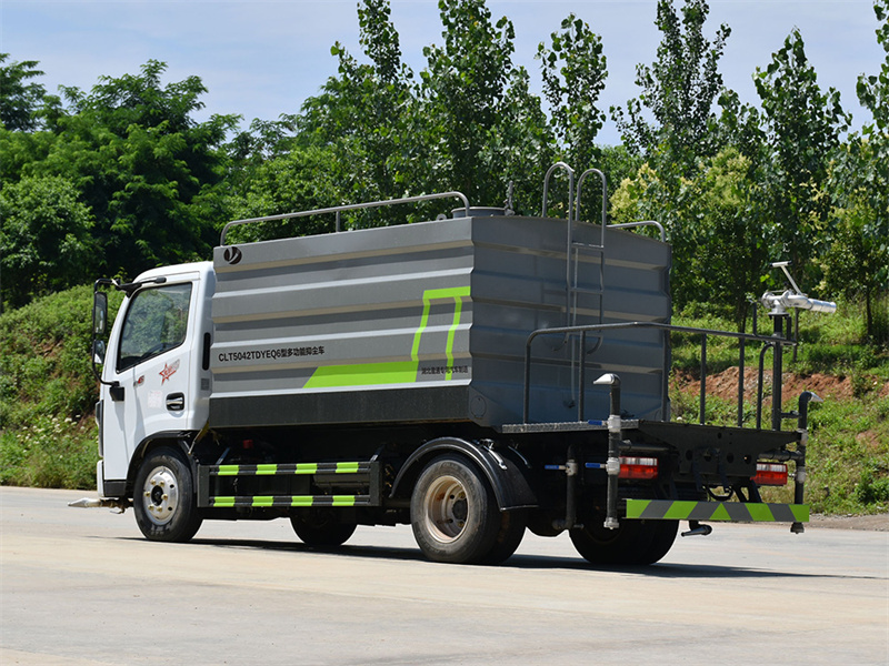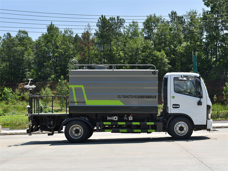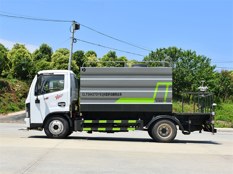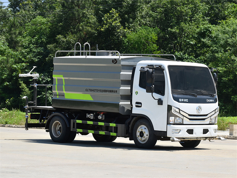 東風7方藍牌灑水車產品簡述:縱昂牌 CLT5042TDYEQ6 型多功能抑塵車標配前噴(鴨嘴)、后對 沖、后灑、側噴、后置式工作平臺,平臺上配置綠化水炮可 360 °旋轉,既可 以調成柱狀,也可以調成霧狀),配備優質大功率專用灑水泵(可自吸自排, 可從河里或池塘抽水到罐體),取力器,雜物過濾網,消防接口,自流球閥系統、 取力器、球閥、濾網均為國家標準產品,主管道加粗,法蘭墊、法蘭盤加厚,大通徑球閥。整體具備性能優良安全可靠、效率高、流量大、維修方便等特點