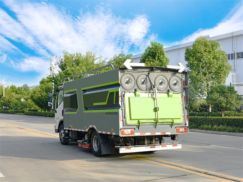9.集塵箱自主研發(fā)三級(jí)降塵技術(shù),采用重力除塵,慣性除塵,濾網(wǎng)除 塵,并結(jié)合脈沖除塵技術(shù),既能將灰塵吸凈,又能防止濾網(wǎng)堵塞。10. 車輛后部集塵箱安裝手動(dòng)吸口,可連接吸塵管直接手動(dòng)操作。