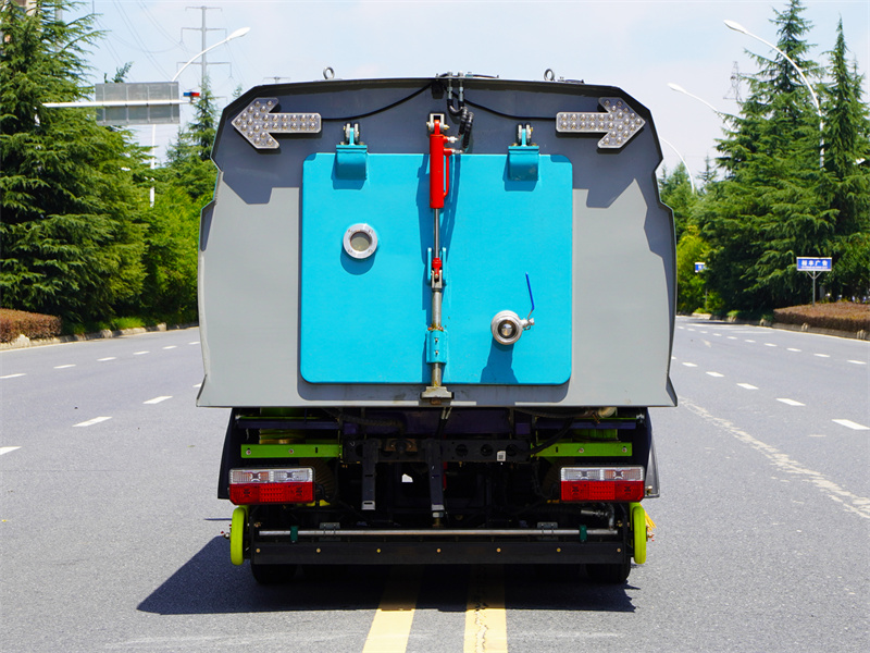 10、清水箱1.5m²,垃圾箱1.8m³,廂體采用傾翻卸料。