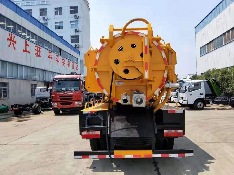 水罐3方,污罐7方,水罐采用4mm武鋼優(yōu)質(zhì)碳鋼制作,污罐采用6mm武鋼優(yōu)質(zhì)鋼板制作,配SK-9水循環(huán)泵/8噸油真空泵(根據(jù)客戶需求選裝),170流量高壓泵,24兆帕壓力,真空防溢閥,真空壓力表,視污窗,水罐焊接在罐體兩側(cè),水污罐體可液壓舉升自卸,后開蓋可液壓開啟,配60米高壓軟管,10個大小不同高壓噴頭,8米吸污管,尾部100mm吸污口,100mm排污口(可根據(jù)客戶需求加大),帶免征,環(huán)保公告!!