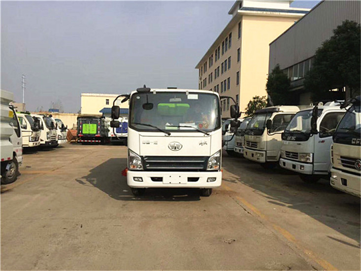自動離合器驅動風機,減少風機啟動和停止時對發動機的沖擊。在使用過程中具有高度耐磨、使用壽命長、低噪音、低油耗量和節省成本的優點。 采用上市公司北玻臺信大功率耐磨免維護離心風機,無噪音,效率高、風量大,使用壽命長 清水箱充分利用了車載空間,容積1.5m3,內置水位報警器,水箱內部做防腐,防銹,防毒處理,使水泵運行更安全,保障了清掃的效率。 垃圾箱采用雙層內膽不銹鋼結構,容積4m3,內部加裝過濾網板,能有效地防止樹葉、塑料袋之類的輕飄物堵塞風口及灰塵的排出。內置噴霧壓塵裝置,最大限度的利用了垃圾箱裝載垃圾的空間,廂體采用傾翻卸料,解放虎V5方掃路車基本詳情,左右立掃為單掃盤,前掃盤帶自動避讓功能,減少了掃刷的數量和掃刷消耗量,能降低使用成本。掃刷上加裝噴水裝置,用于噴霧降塵。左右立掃分開控制,可實現后掃和全掃等不同的作業模式