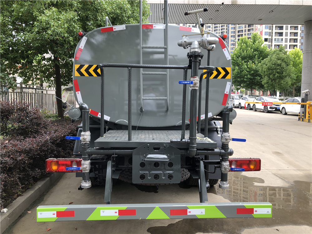 東風(fēng)華神T1灑水車專用功能配置:罐體實際容積約為9.35立方米,采用武鋼優(yōu)質(zhì)碳鋼板卷壓成型。配備專用灑水泵,自吸自排,前噴后灑、側(cè)噴、后工作平臺及灑水高壓炮。灑水泵自吸高度為6米左右,整車灑水寬度14米左右,后工作平臺水炮可調(diào)成:直沖狀、大雨、中雨、小雨、毛毛雨,有效射程≥28米,整車帶接頭、水位計,自流閥。后工作平臺主管道有一個一寸的澆花接口,附送2根3米水管,1個爬梯,兩側(cè)及后保險杠。