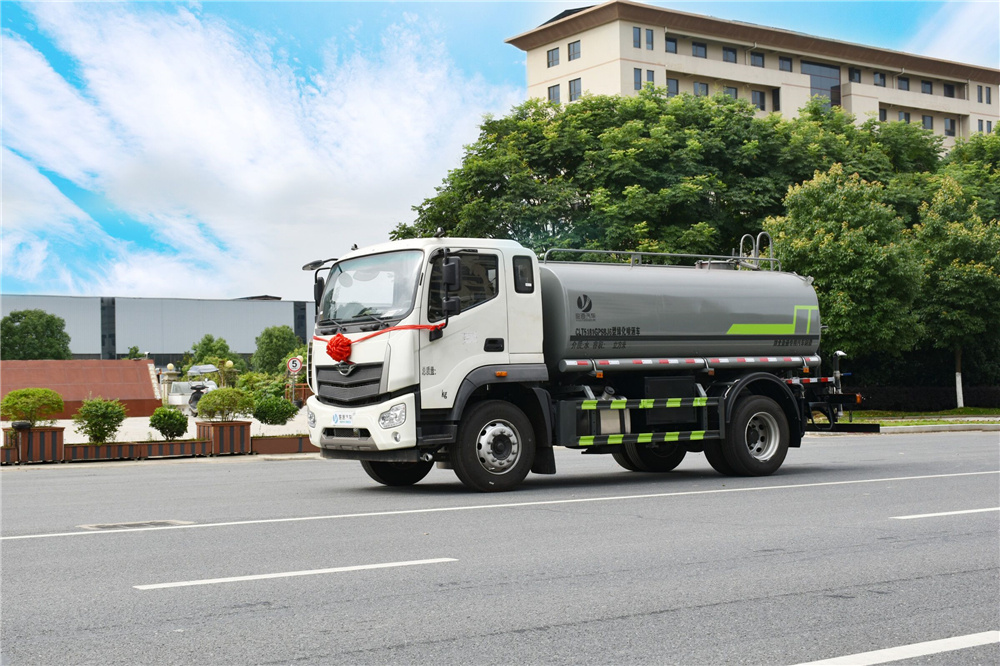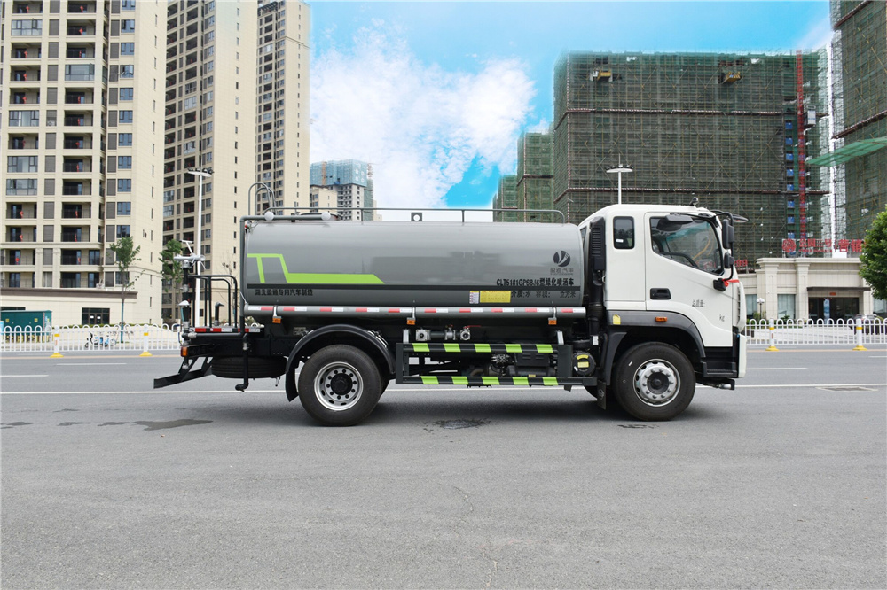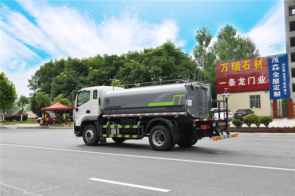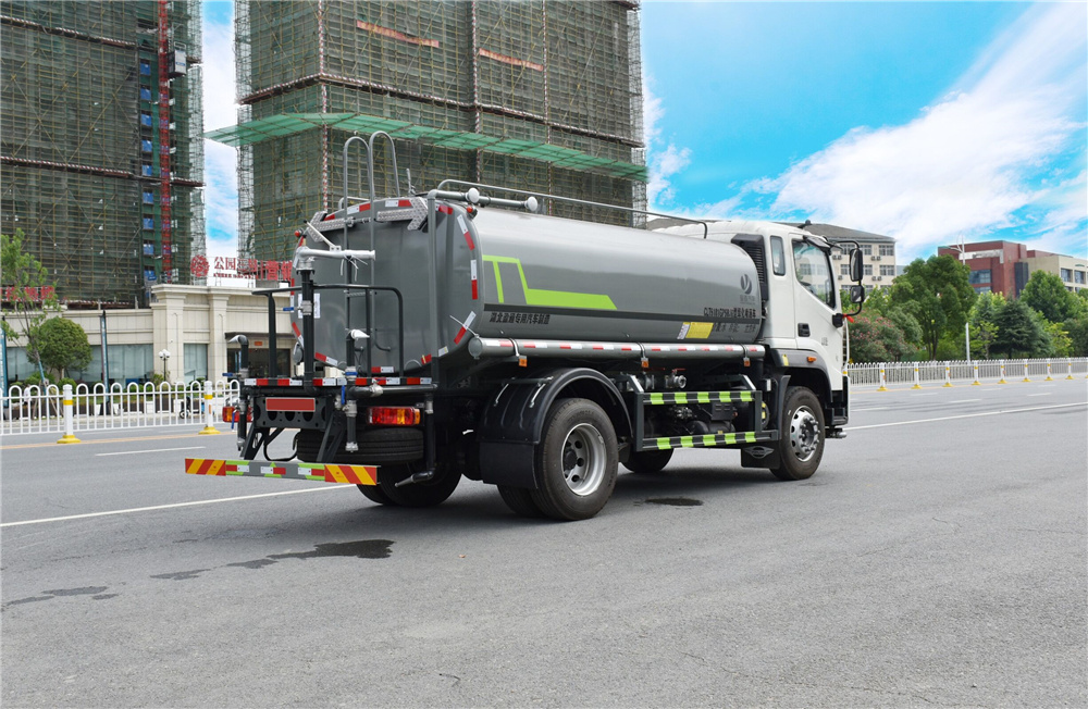 專用功能配置:罐體實際容積約為12-14立方米,公告有效參數11.56立方米、采用武鋼優質碳鋼板卷壓成型。配備專用灑水泵,自吸自排,前噴后灑、側噴、后工作平臺及灑水高壓炮。灑水泵自吸高度為6米左右,整車灑水寬度14米左右,后工作平臺水炮可調成:直沖狀、大雨、中雨、小雨、毛毛雨,有效射程≥28米,整車帶接頭、水位計,自流閥。后工作平臺主管路帶1寸澆花接口,附送2根3米水管,1個爬梯,兩側及后保險杠。