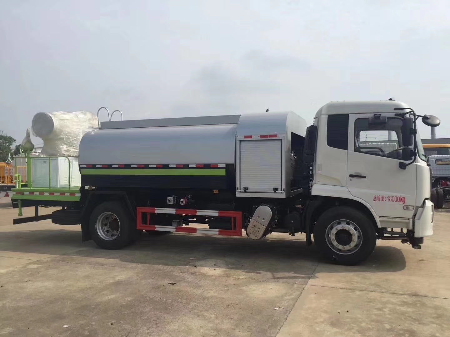 整車說明:專用裝置為抑塵霧炮,用于城市抑塵。整車長/軸距/后懸對應關系為(mm):7890/3950/2540;8300/4200/2700;8700/4500/2800;9150/4700/3050;9150/4700/3020;9600/5000/3200;9900/5300/3200;10250/5800/3050.防護材料:Q235A碳鋼,連接方式:左右側面采用焊接連接。后下部防護采用螺栓連接,后部防護斷面尺寸(mm):120×50,后部防護離地高度(mm):490。ABS型號/生產(chǎn)廠家:3631010-C2000/東科克諾爾商用車制動系統(tǒng)(十堰)有限公司,ABS 8/東科克諾爾商用車制動系統(tǒng)(十堰)有限公司, 4460046450/威伯科汽車控制系統(tǒng)()有限公司。隨底盤選裝駕駛室。選裝霧炮型號:WF-60/WF-80/WF-100所對應的整備質量分別為:9650kg/10600kg/11300kg。選裝外形圖片。