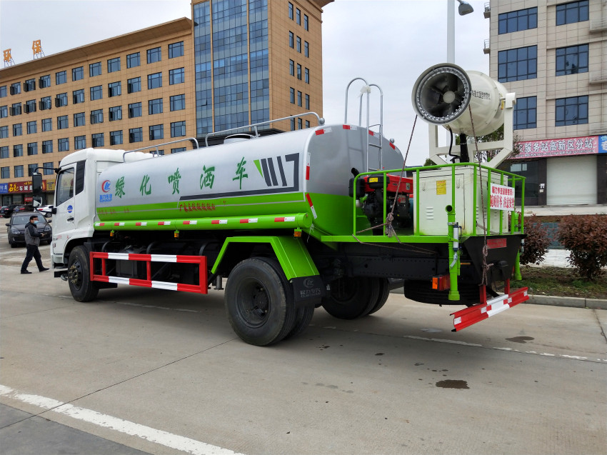 帶前部沖洗路面噴灑裝置、后部扇形降塵噴灑裝置,兩側(cè)面噴灑裝置,帶后部工作平臺、平臺上安裝綠化灑水炮(炮噴射形狀可調(diào)),可調(diào)直沖狀、大雨、中雨、毛毛雨,可連續(xù)調(diào)節(jié),最大射程可達(dá)28米,垂直吸程6.5米,揚(yáng)程14米,帶消防接口、自流閥,可自吸自排。