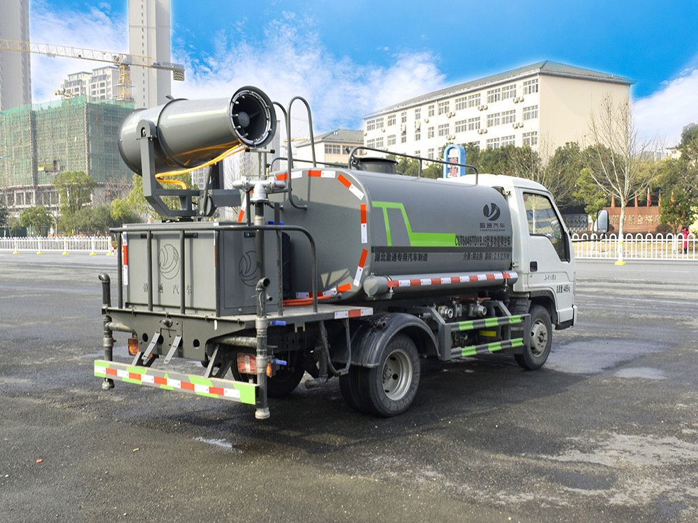 福田小卡 2 2.7 方抑塵車-灑水車產品產品簡述 抑塵車又稱為綠化噴灑車、多功能灑水車、園林綠化灑水車。抑 塵車適合于各種路面沖洗,樹木、綠化帶、草坪綠化,道路、廠礦企業 施工建設,高空建筑沖洗。抑塵也可以作為運水車使用,最常見的車 型有綠化噴灑車、多功能灑水車、綠化灑水車幾大類。 我公司產品標配后對沖、后灑、側噴、后置式工作平臺,平臺上 配置綠化水炮(可 360°旋轉,既可以調成柱狀,也可以調成霧狀, 更可以調成直沖狀、大雨、中雨、小雨、毛毛雨),配備優質大功率 專用灑水泵(可自吸自排,可從河里或池塘抽水到罐體),取力器, 雜物過濾網,消防接口,自流球閥系統、取力器、球閥、濾網均為國家 標準產品,主管道加粗,法蘭墊、法蘭盤加厚,大通徑球閥。整體具 備性能優良安全可靠、效率高、流量大、維修方便等特點。