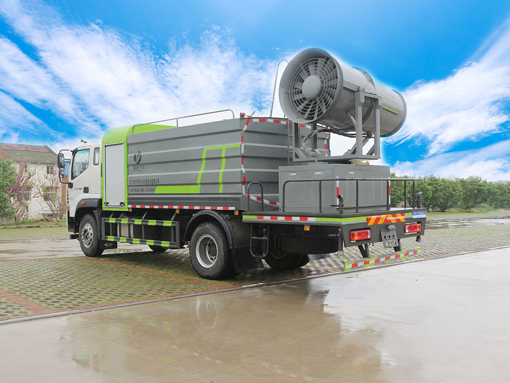 二.產品配置 1.底盤配置: 發動機玉柴 245 馬力(六缸),法士特 8 檔,4500 軸距,10.00 鋼絲胎,前 4.5T/后 10T,中控鎖,電動玻璃,助力,空調,行車記錄 儀2.上裝配置: 1、罐體約為 12 方,可加裝 50-80 型霧炮 2、邊燈帶電,罐體尾部上方標配 2 個紅色示寬燈, 3、標配前噴為鴨嘴直沖,標配后沖,用戶可根據自己的需求,來調 整對沖位置。 4、花紋防滑平臺,炮筒后蓋為定制型螺栓卡扣, 5、前噴、后沖、后灑、側噴,綠化高炮開關球閥均采用 50 大通經 不銹鋼球閥, 6、新式軸承式水炮,更加耐用, 7、60-90 型水泵, 8、防腐法蘭墊片, 9、鋁制后灑,不易炸開 10、罐體自動焊(美國林肯焊機及電源),拼板自動焊接,封頭環 縫焊接,無氣孔,焊縫美觀。 11、側護網、后保險杠、均為螺栓連接,方便拆卸,維修方便。 12、塑料擋泥板,替代鐵擋泥板,更加輕便,用螺栓連接,方便拆 卸。 13、前部、后部主管連接處為 6 孔圓法蘭,不易沖墊
