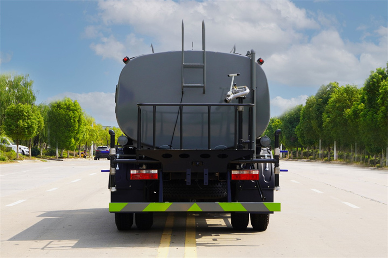 東風福瑞卡12噸灑水車產品標配前噴(鴨嘴)、后沖、后灑、側噴、后置式工作 平臺,平臺上配置綠化水炮(可 360°旋轉,既可以調成柱狀,也可 以調成霧狀,更可以調成直沖狀、大雨、中雨、小雨、毛毛雨),配 備優質大功率專用灑水泵(可自吸自排,可從河里或池塘抽水到罐體), 取力器,雜物過濾網,消防接口,自流球閥系統、取力器、球閥、濾網 均為國家標準產品,主管道加粗,法蘭墊、法蘭盤加厚,大通徑球閥。 整體具備性能優良安全可靠、效率高、流量大、維修方便等特點