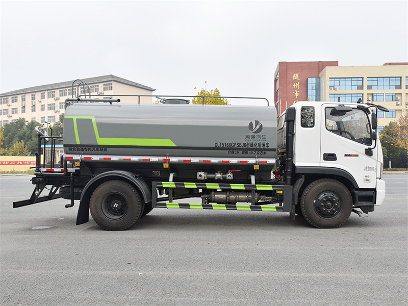 產品標配前噴(鴨嘴)、后沖、后灑、側噴、后置式工作 平臺,平臺上配置綠化水炮(可 360°旋轉,既可以調成柱狀,也可 以調成霧狀,更可以調成直沖狀、大雨、中雨、小雨、毛毛雨),配 備優質大功率專用灑水泵(可自吸自排,可從河里或池塘抽水到罐體), 取力器,雜物過濾網,消防接口,自流球閥系統、取力器、球閥、濾網 均為國家標準產品,主管道加粗,法蘭墊、法蘭盤加厚,大通徑球閥。 整體具備性能優良安全可靠、效率高、流量大、維修方便等特點
