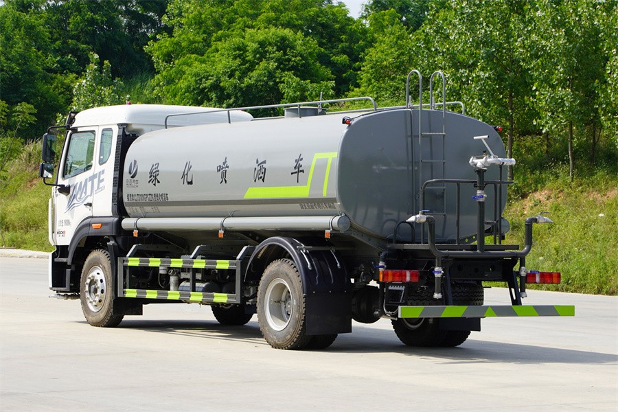 重汽15噸灑水車產(chǎn)品標配前噴(鴨嘴)、后沖、后灑、側(cè)噴、后置式工作 平臺,平臺上配置綠化水炮(可 360°旋轉(zhuǎn),既可以調(diào)成柱狀,也可 以調(diào)成霧狀,更可以調(diào)成直沖狀、大雨、中雨、小雨、毛毛雨),配 備優(yōu)質(zhì)大功率專用灑水泵(可自吸自排,可從河里或池塘抽水到罐體), 取力器,雜物過濾網(wǎng),消防接口,自流球閥系統(tǒng)、取力器、球閥、濾網(wǎng) 均為國家標準產(chǎn)品,主管道加粗,法蘭墊、法蘭盤加厚,大通徑球閥。 整體具備性能優(yōu)良安全可靠、效率高、流量大、維修方便等特點