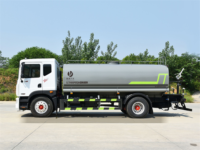 該車主要用于城鄉園林綠化噴灑;主要裝置為罐體及噴灑裝置;隨底盤選裝駕駛室,選裝燃油箱,電瓶,尿素罐,儲氣筒左右安裝位置.罐體總容量:11.61立方米;罐體有效容積:11.05立方米;罐體外形尺寸(長×長軸×短軸)(mm):5000×2350×1600,5000×2350×1520;ABS系統生產廠家,型號:焦作博瑞克控制技術有限公司,J ABS;襄陽東風隆誠機械有限責任公司,ABS/ASR-24V-4S/4M.側、后防護材料均為:Q235碳鋼,連接方式均為:螺栓連接,后部防護截面尺寸(mm):120×50,后部防護離地高度(mm):490.僅采用底盤4700mm,4500mm軸距改裝.選裝限速裝置,限速89.選裝噴灑裝置樣式,選裝弧形噴霧裝置,選裝箭頭燈裝置,選裝水炮支架位置,選裝自動球閥安裝位置,選裝罐體樣式,選裝前部自動炮樣式,前伸500mm,整車長度為8950,8800mm.選裝罐體頂部方形罐口裝置及高位花灑裝置,選裝罐口位置,選裝工具箱,選裝尾部自流口裝置,后部作業燈僅在作業時開啟,車輛行駛過程中不可開啟.