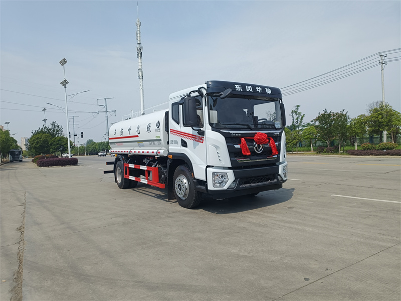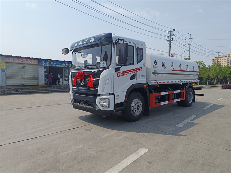 東風15方灑水車產品標配前噴(鴨嘴)、后沖、后灑、側噴、后置式工作 平臺,平臺上配置綠化水炮(可360°旋轉,既可以調成柱狀,也可 以調成霧狀,更可以調成直沖狀、大雨、中雨、小雨、毛毛雨),配 備優質大功率專用灑水泵(可自吸自排,可從河里或池塘抽水到罐體), 取カ器,雜物過濾網,消防接口,自流球閥系統、取カ器、球閥、濾網 均為國家標準產品,主管道加粗,法蘭墊、法蘭盤加厚,大通徑球閥。 整體具備性能優良安全可靠、效率高、流量大、維修方便等特點。