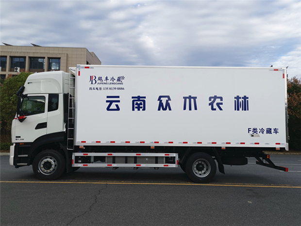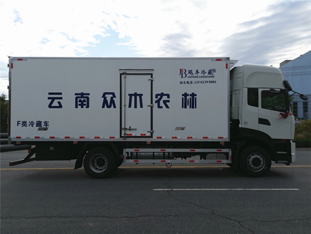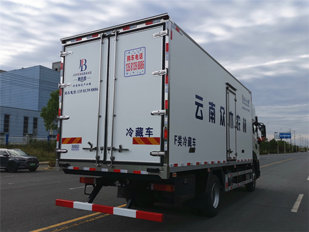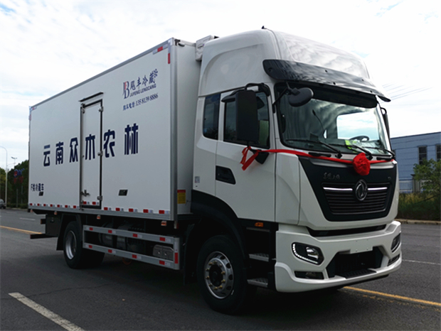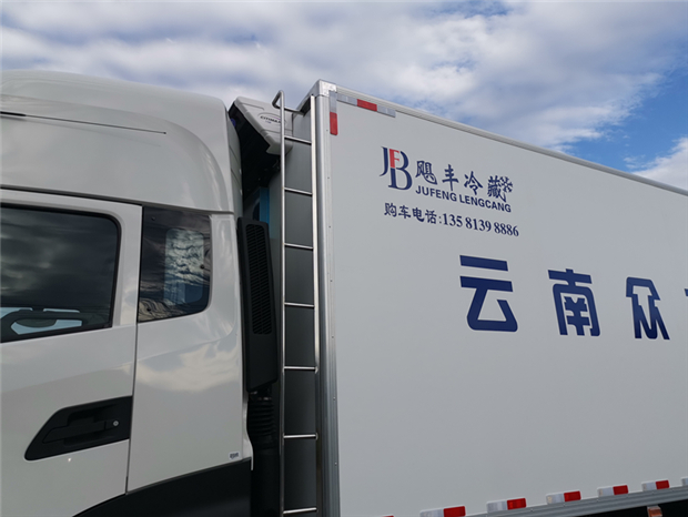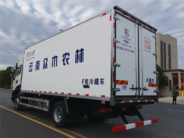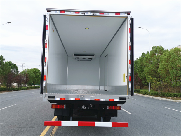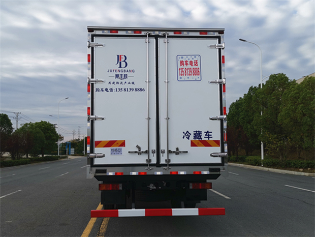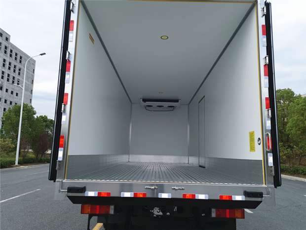 車(chē)廂配置為:《斷橋隔溫工藝、整體結(jié)構(gòu)框架》;內(nèi)外面料為3mm新款玻璃鋼;側(cè)板+頂板:全密封雙組合聚氨酯膠粘連;廂體厚度為8cm;頂板10cm厚,底板12cm厚,最新款鋁合金包邊型材;型材局部厚度為4mm(鋼制鉚釘加固);廂體內(nèi)部采用2個(gè)LED照明燈及廂體示寬燈;后門(mén)框?yàn)?mm厚不銹鋼材質(zhì);門(mén)框密封條為三元乙丙橡膠材質(zhì);加厚型不銹鋼合頁(yè)及鎖件;副梁為Q700車(chē)用大梁鋼;15mm厚大梁墊皮;加裝防撞膠塊;不銹鋼門(mén)鎖件,配后雙開(kāi)門(mén)。底板為加厚鋁合金通風(fēng)槽滿(mǎn)焊,帶30cm高新型圍裙,副駕駛一側(cè)居中靠前開(kāi)單側(cè)門(mén),鋁合金側(cè)防護(hù),不銹鋼冷機(jī)維護(hù)爬梯,帶大工具箱一個(gè)。帶剎車(chē)淋水器,前后淋水分別控制。