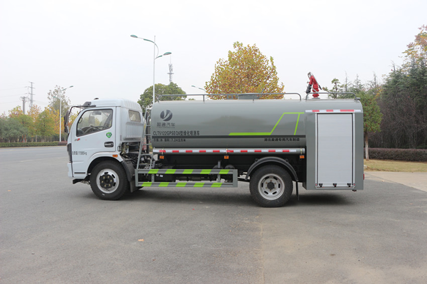 東風(fēng)灑水車(chē)采用東風(fēng)新款專用底盤(pán),白色排半可前翻駕駛室,玉柴185馬力國(guó)五發(fā)動(dòng)機(jī),陜齒八檔變速箱,軸距3800mm,9噸后橋,825R20原廠鋼絲胎,原廠abs,帶方向助力,離合助力器,氣剎制動(dòng)。