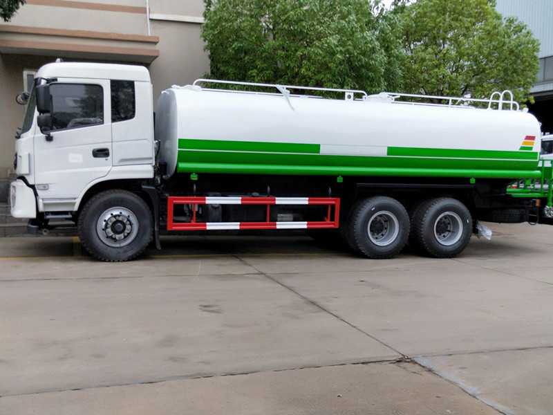 20噸灑水車,吸程≧7米,灑水寬度≧14-16米,射程≧25-30米,引水時(shí)間<5min,流量60m3/h。前沖(噴)、后灑、帶側(cè)噴(花灑)、帶后工作平臺(tái)、平臺(tái)上安裝綠化灑水高炮(炮噴射形狀可調(diào)節(jié):直沖、大雨、中雨、毛毛雨、霧狀、可連續(xù)調(diào)節(jié),360°旋轉(zhuǎn)),配消防接口,自流閥,濾網(wǎng),帶自吸自排功能。配備大功率專用灑水泵,泵可自吸自排,安裝過濾網(wǎng),帶消防接口,可通過消防栓進(jìn)水,帶自流閥,隨車選裝20米綠化卷盤,可噴灑農(nóng)藥,罐體金屬漆。罐體有橢圓和方圓罐兩種,可根據(jù)用戶的要求定做。