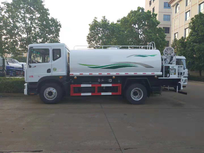品名:水;密度:1000千克/立方米;有效容積:11.7立方米;罐體外形尺寸(長×長軸×短軸)(mm):4200×2300×1460;ABS配置前沖、后灑、左右側噴水、帶后工作平臺、平臺上安裝綠化灑水高炮(炮噴射形狀可調節:直沖、大雨、中雨毛毛雨、霧狀、可連續調節,360°旋轉),配消防接口,自流閥,濾網,帶專用灑水泵具有自吸自排功能灑水寬度≧14-16米,射程25-30米,帶增壓,方向助力。罐體采用優質碳鋼制作。帶兩根輸水軟管
