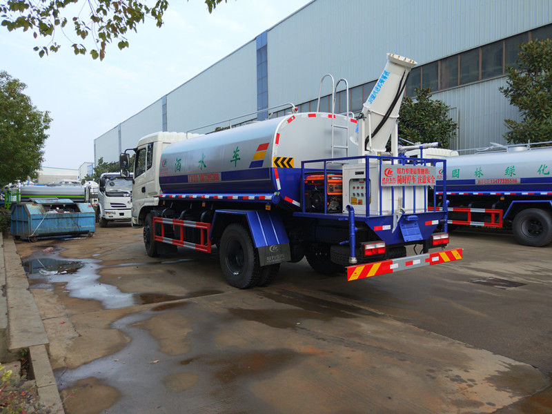 整車長度,罐體外形尺寸(長×長軸×短軸),軸距,前懸與后懸的對應關系為吸程7米,灑水寬度14-16米,射程25-30米,引水時間<5min,流量60m3/h。前沖()、后灑、帶側噴(花灑)、帶后工作平臺、平臺上安裝綠化灑水高炮(炮噴射形狀可調節:直沖、大雨、中雨、毛毛雨、霧狀、可連續調節,360°旋轉),配消防接口,自流閥,濾網,帶自吸自排功能配備大功率專用灑水泵,泵可自吸自排,安裝過濾網,帶消防接口,可通過消防栓進水,帶自流閥,隨車選裝20米綠化卷盤,可噴灑農藥,罐體金屬漆。罐體有橢圓和方圓罐兩種,可根據用戶的要求定做