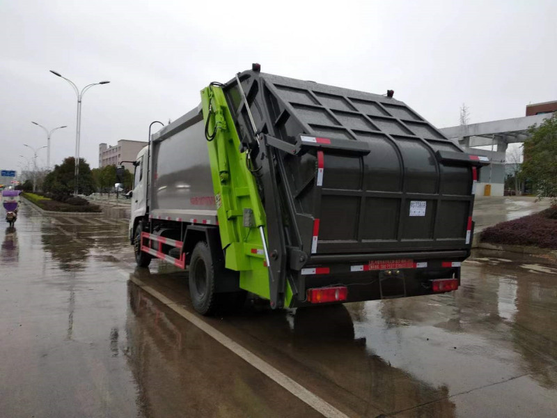 國六東風天錦壓縮式垃圾車采用新款平面弧形廂體,廂體材料為武鋼優(yōu)質(zhì)碳鋼,有效壓縮容積12-14立方,PLC一鍵操作控制,手電一體操作模式,兩側(cè)雙電控,帶駕駛室內(nèi)操作,底板支撐加強,雙向壓縮,開放式易清潔污水箱。壓縮式垃圾車采用機電液一體化技術(shù),借助機、電、液聯(lián)合自動控制系統(tǒng)、電腦控制、手動操作系統(tǒng),通過填裝器和推鏟等專用裝置,實現(xiàn)垃圾倒入、壓碎或壓扁、強力裝填,把垃圾擠入車廂并壓實和推卸,污水全部進入污水收集箱,解決了垃圾運輸過程中的二次污染的問題。壓縮式垃圾車具有自動反復(fù)壓縮以及蠕動壓縮功能,壓縮比高、密封性好、裝載量大﹑操作方便、環(huán)保性好﹑整車利用功率高等優(yōu)點。作業(yè)自動化,垃圾收集方式簡便、高效。東風天錦壓縮式垃圾車作業(yè)系統(tǒng)具有電腦控制和手動操縱雙重功能,大大地保障和提高車輛的使用率,而且后翻轉(zhuǎn)機構(gòu)有幾種選擇:1、掛塑料桶式翻轉(zhuǎn)機構(gòu);2、掛鐵桶式翻轉(zhuǎn)機構(gòu);3、擺臂式翻轉(zhuǎn)機構(gòu); 4、簸箕斗式翻轉(zhuǎn)機構(gòu)