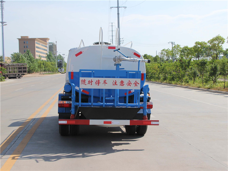 上裝配置:罐體采用4毫米厚武鋼產容積板焊接而成,內設防浪板,程力大功率灑水泵,可自吸水,加壓排水,前沖15米寬,后灑壓塵,側噴花灑噴頭,尾高綠化高位水炮,射程28米,可調節水柱、大中雨、毛毛雨等,可做臨時消防滅火用。