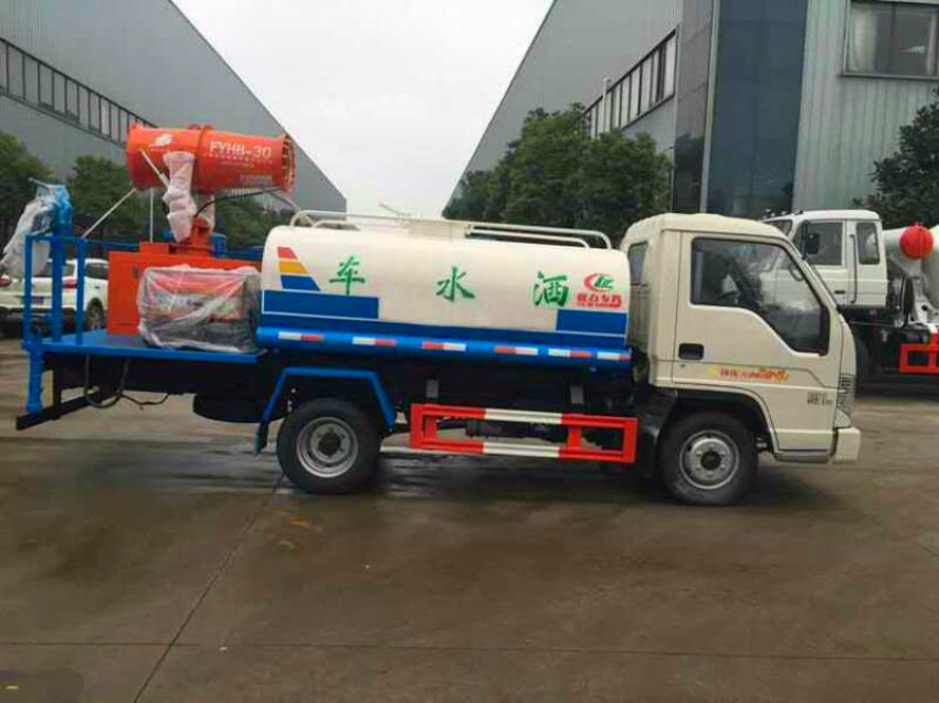 灑水車有自吸功能(從池塘吸水,垂直吸深10米)。配兩個前沖灑水頭(灑水寬度15米),后面4個灑水噴頭(可向后面和側(cè)面灑水),后工作平臺及灑水高炮(高炮射程可達30多米,可做應(yīng)及消防使用)。兩根吸水管(池塘吸水用),水位顯示計。