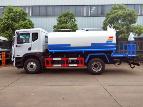 用配置:罐體標準容積12.0-14.0立方,采用4mm優質碳鋼板,罐內制作減震波浪隔板,以減輕汽車行駛時罐體液體沖擊,配置灑水車水泵,可泵進泵出,安裝前沖、后灑、側噴、灑水平臺、灑水高炮(可360度旋轉,可調節直流、大雨、小雨、毛毛雨、霧狀),前封頭帶水位計,后平臺主管路帶1寸澆花接口,后爬梯,平臺后部帶小安全告知牌:“隨時停車,注意安全”,配置兩根四米的吸水管,電子音樂喇叭,及消防接口。罐體顏色:銀灰/銀藍,或上白/下藍,罐體兩側噴“灑水車、綠化灑水車”字樣,貼反光標示。灑水寬度≥14米,高炮射程≥28米,垂直吸程≥6米。