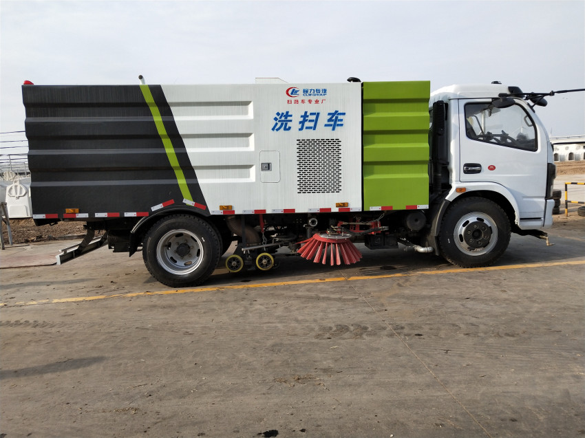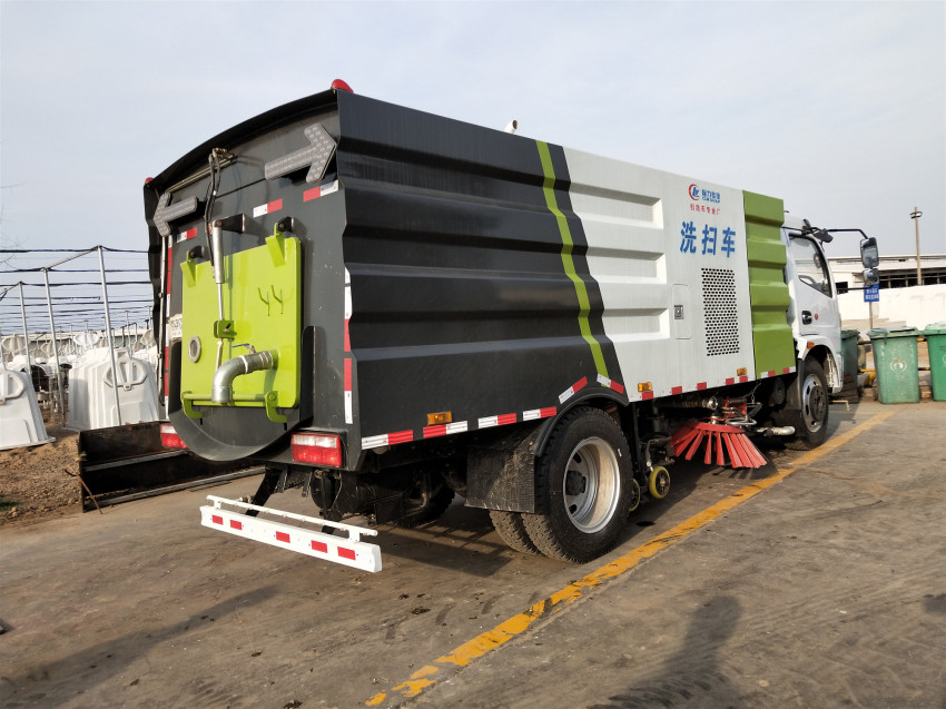 洗掃車(chē)具有路面清洗、路面清掃 路緣和路緣石立面洗刷、低壓沖洗、噴霧除塵等多功能。有“全洗掃”、 “左洗掃”、 “右洗掃”、 “全掃”、 多種作業(yè)模式可選擇。選擇“全洗掃”模式清洗廣場(chǎng)和路面,清洗效率高效果好,洗凈率達(dá)95%以上。選擇“左洗掃”或“右洗掃”模式清洗路面和路緣 。需要進(jìn)行路面清掃或路面保潔作業(yè)時(shí),可選擇掃路模式。需要噴霧除塵時(shí),可開(kāi)啟噴霧裝置,進(jìn)行噴霧除塵作業(yè)。可以像灑水車(chē)一樣對(duì)路面進(jìn)行低壓沖洗作業(yè)。