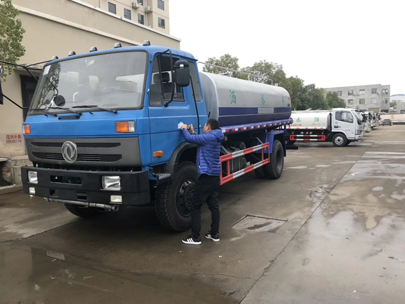 3.灑水車產(chǎn)品備注:灑水泵可起到吸水和加壓排水功能,可將池塘的水直接罐也可直接從城市街道的消防栓上連接注水,罐。所有灑水車同時(shí)具有運(yùn)水或裝載其他(如:牛奶、食用水)功能,罐體外壁經(jīng)發(fā)泡或巖棉處理后具有保溫功能。灑水車也可作噴藥車使用,可進(jìn)行專業(yè)的防腐防銹處理,選裝不銹鋼泵,管道,水炮及不銹鋼罐體。對(duì)灑水車有特殊要求的用戶請(qǐng)?zhí)崆案嬷?我們可按用戶要求設(shè)計(jì)改裝!井a(chǎn)品信息圖片僅供用戶選購(gòu)參考,產(chǎn)品以實(shí)際提供為準(zhǔn)】三、操作流程:1、使用前的工作 (1)檢查變速箱內(nèi)油油面,以到油面螺塞孔的下緣為準(zhǔn),不足時(shí)添加齒輪油。 (2)檢查變速箱操縱桿,使之處于空檔位置,檢查取力箱操縱手柄位置,使之為水平向右位 置,使之為水平向右位置,檢查油門控制器,使其。