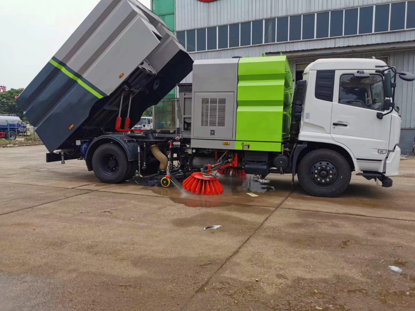 東風天錦洗掃車具有路面清洗、路面清掃路緣和路緣石立面洗刷、低壓沖洗、噴霧 除塵等多功能。有“全洗掃”、 “左洗掃”、 “右洗掃”、 “全掃”、 多種作 業(yè)模式可選擇。選擇“全洗掃”模式清洗廣場和路面,清洗效率效果好,洗 凈率達 95%以上。選擇“左洗掃”或“右洗掃”模式清洗路面和路緣 。需要進 行路面清掃或路面保潔作業(yè)時,可選擇掃路模式。需要噴霧除塵時,可開啟噴霧裝置,進行噴霧除塵作業(yè)。可以像灑水車一樣對路面進行低壓沖洗作業(yè)。