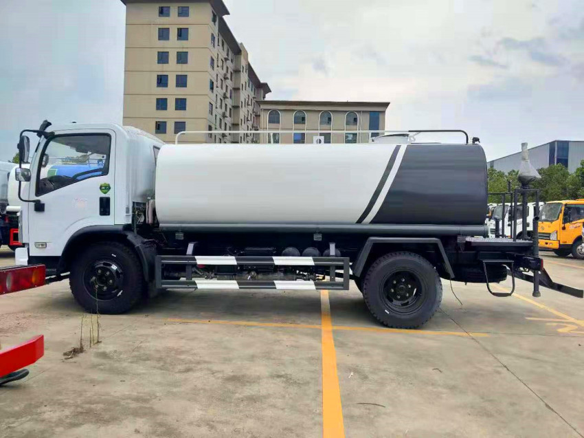 改裝配置:罐體用4MM碳鋼板制作,罐內隔板具有防波作用,以減低汽車行駛時罐體液體的沖擊。整車帶一個專用灑水泵(垂直最大吸程6米),灑水寬度14米,射程28米。多功能灑水車配備2個前沖(噴)(能將路面泥巴、塵土、垃圾沖干凈);2個后灑(能均勻地將水灑在路面,一次灑水寬度14米)、2個側噴(花灑)(能均勻地將路旁綠化帶澆灌)、帶1個后工作平臺,平臺上安裝1個綠化灑水高炮(灑水炮可全方位旋轉,可連續調成直沖狀、大雨、小雨、毛毛雨,霧狀可調節沖洗高大樹木),引水時間<5min,流量90m3/h。帶1個消防接頭,帶1個自流閥,1個過濾裝置、人性化爬梯及側防護欄,安裝灑水音樂喇叭。