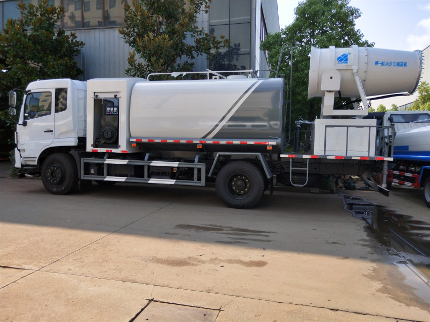 前噴后灑,前裝有鴨形噴嘴或圓頭沖嘴,后面裝有圓柱開(kāi)灑水噴嘴或蓮蓬頭噴嘴,后部有一工作平臺(tái),裝配有高壓水炮。后部還可裝8個(gè)噴嘴(選裝)噴水器一般用于沖洗街道。