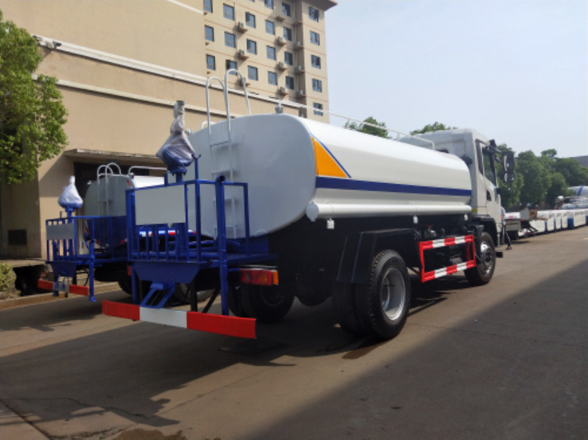 配備大功率專用灑水泵,泵可自吸自排,安裝過濾網,帶消防接口,可通過消防栓進水,帶自流閥,隨車選裝20米綠化卷盤,可噴灑農藥,罐體金屬漆。罐體有橢圓和方圓罐兩種,可根據用戶的要求定做