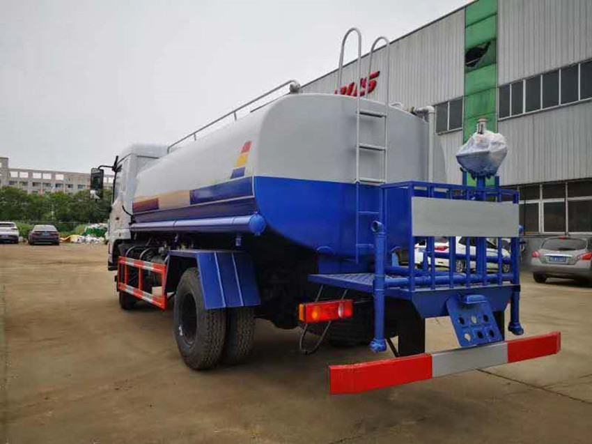 12噸灑水車上裝配置:東風國六12噸東風F5灑水車,配備國內大功率灑水車水泵,可自吸自排,引水時間<15min,流量40m3/h,揚程35米。其它部分標配為:前沖、后灑、側噴、后工作平臺、360度可調節綠化水炮,水泵垂直吸程≧7米,前沖灑水寬度≧14米,綠化水炮射程≧35米,自流閥、濾網、消防接口(可連接消防栓取水,可作應急消防用)。罐前量管(觀察罐內水位)、罐后爬梯、罐上罐口帶簡易護欄、罐側雙炮筒、6米長4寸鋼絲塑膠管兩根,罐體表面雙層油漆工藝,防銹、耐腐蝕,其余有廠家標配。